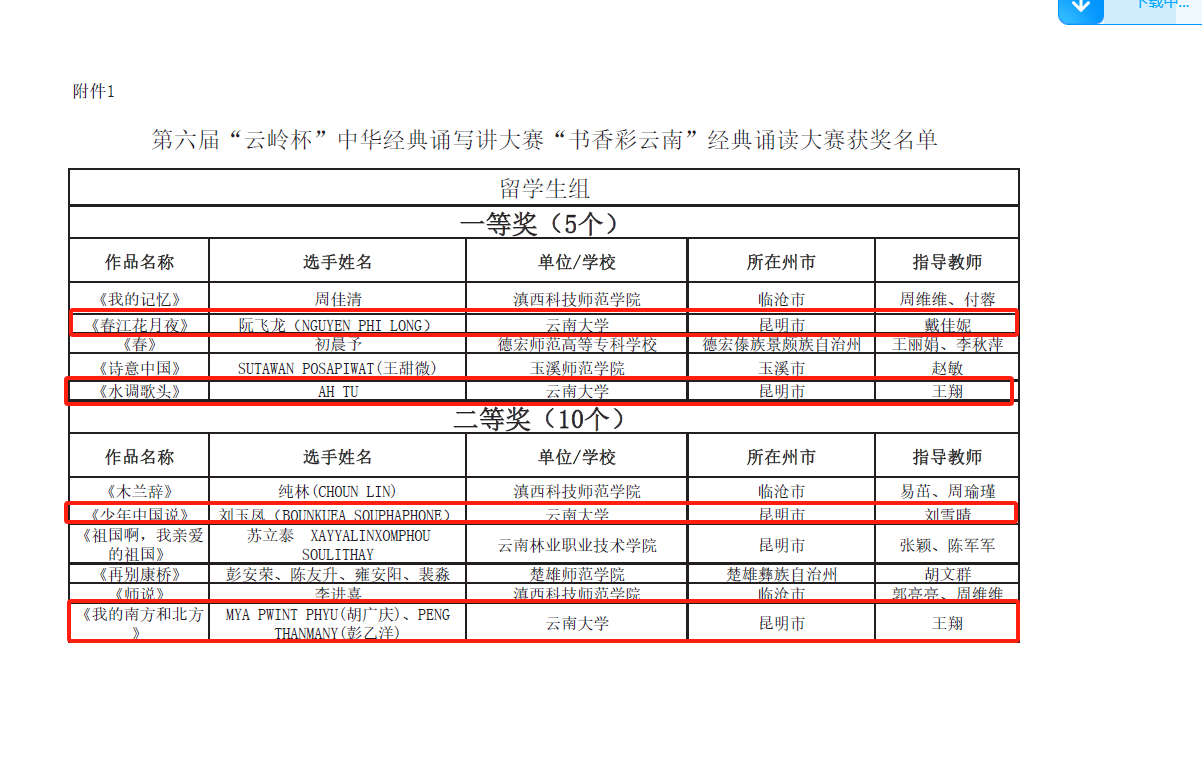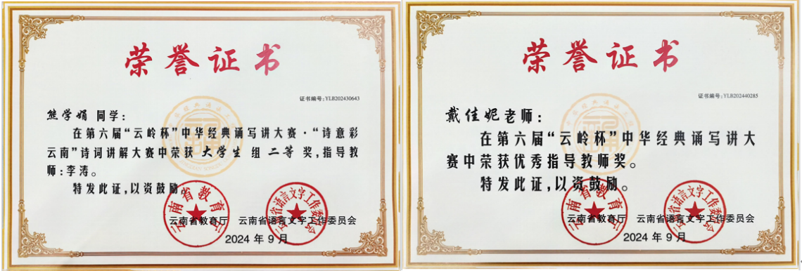 公司员工在第六届“云岭杯”中华经典诵写讲大赛获得的部分奖项