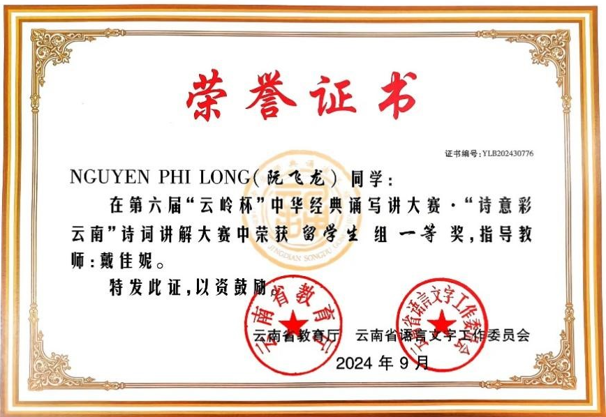 2024年5月,云南省语言文字工作委员会、云南省教育厅启动了第六届“云岭杯”中华经典诵写讲大赛系列活动。本届大赛主题为“典耀中华,赓续文脉”。通过诵读、讲解、书写、篆刻等多种方式,诠释中华优秀文化内涵,彰显中华语言文化魅力,引导广大青年亲近中华经典、弘扬中国精神,增强文化自信。大赛启动以来,公司高度重视,鼓励广大师生踊跃参赛,精心组织,提交多件参赛作品。