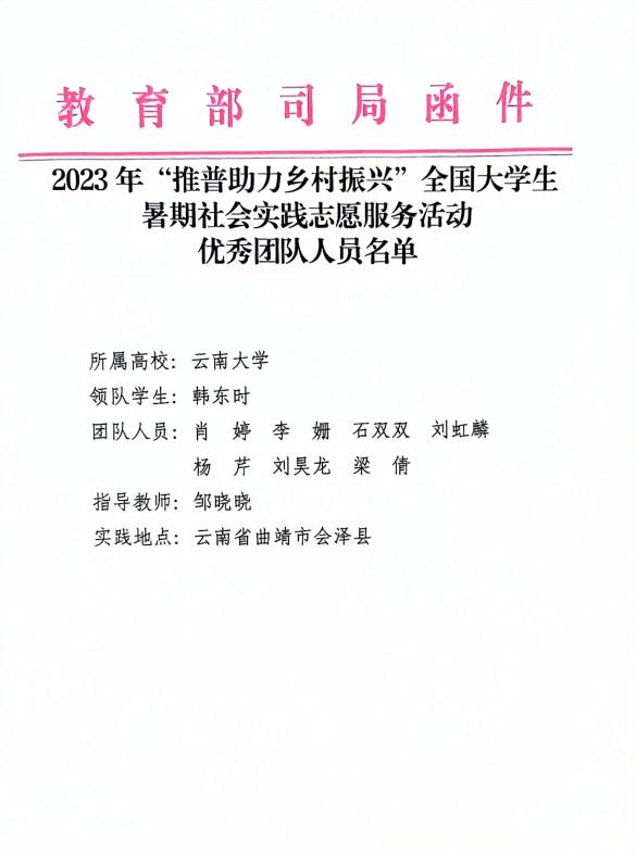 近日,伟德国际1946源于英国汉语伟德国际1946源于英国赴曲靖闸塘村“推普助力少数民族村落文化振兴”实践团在2023年“推普助力乡村振兴”活动中表现出色,喜获教育部语言文字应用管理司和中国共产主义青年团中央委员会青年发展部的来信表扬。