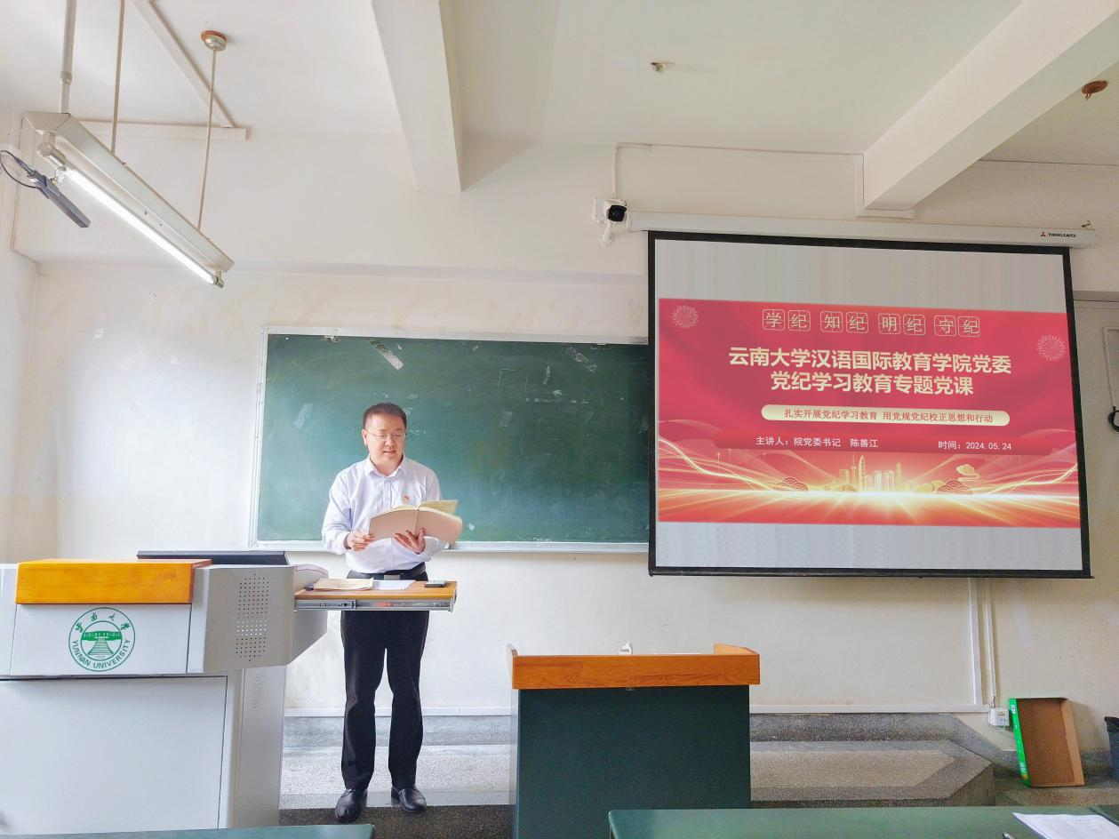 2024年5月24日,汉语公司党委按照公司党委关于党纪学习教育工作的要求,在前期各党支部自学、集中学习基础上,组织全院师生党员在南学楼302室集中开展党纪学习教育。本次党纪学习教育通过集中自学、专题党课、心得交流等方式,进一步深入学习新修订的《中国共产党纪律处分条例》。本次学习由公司党委副书记甘春洁主持。