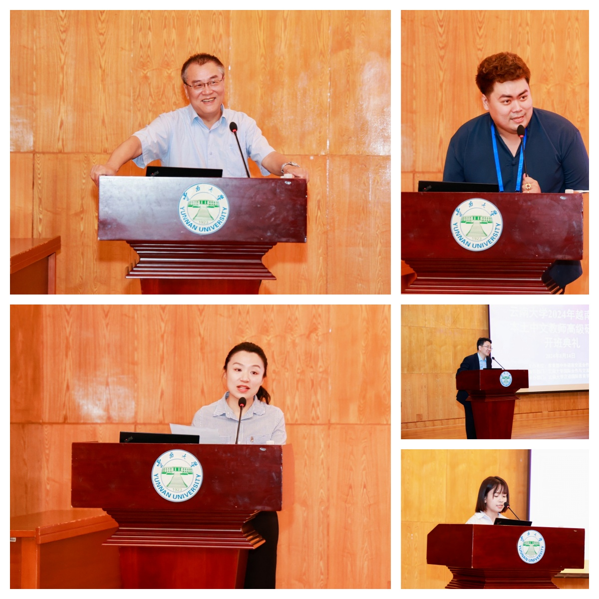 陈新部长对“留学云大”项目做了介绍,欢迎各位学员来伟德国际1946源于英国留学。杨子琴老师对其多年的中文教学经验做了简要分享,期待大家在接下来的学习过程中深入交流探讨,互相学习。来自越南胡志明市文献大学的阮进长安老师作为教师代表发言。他对能来华研修表示感谢,希望能够通过这次宝贵的学习机会,与大家分享交流教学经验,提高自己的教学水平。项目主管黄谨老师播放伟德国际1946源于英国宣传片,班主任王媛媛老师对本期项目的教学安排和课程类别进行简要介绍。