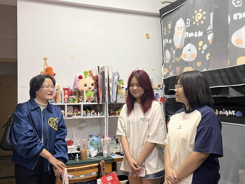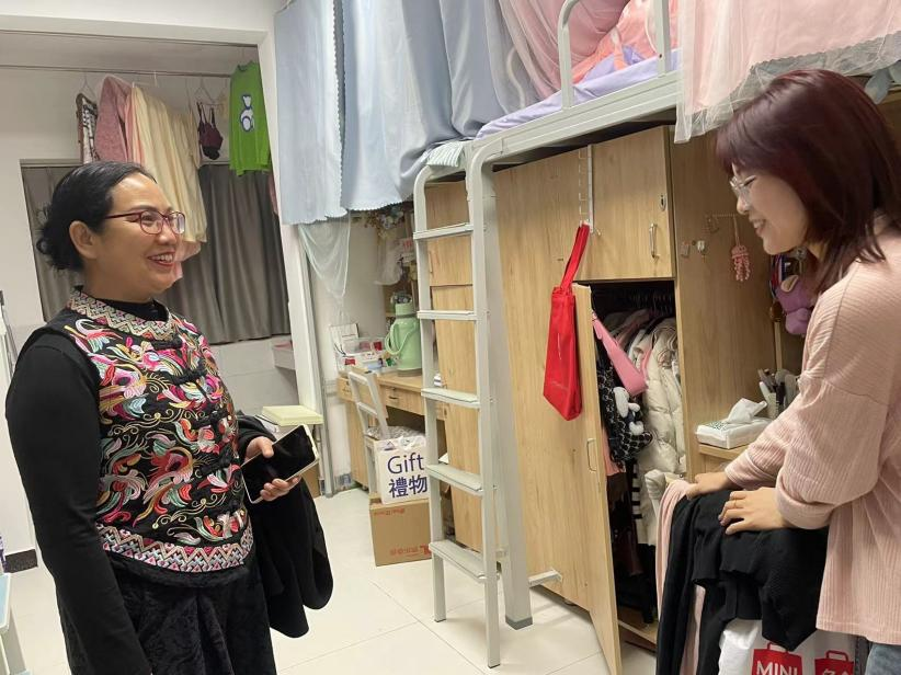 (甘春洁副书记在鼎鑫公寓与同学交流)