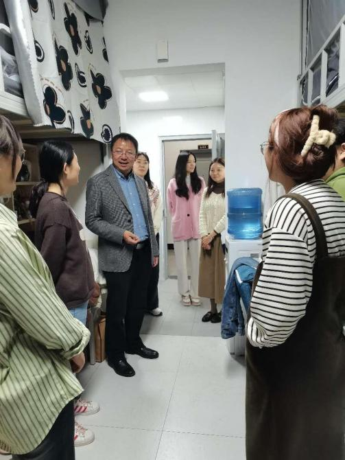 公司领导仔细查看宿舍情况,关心同学们的生活起居,倾听大家的建议与诉求,叮嘱同学们要增强安全意识,关注心理健康,学习反诈知识,防范诈骗,同时要求员工遵守法律法规和校纪校规。