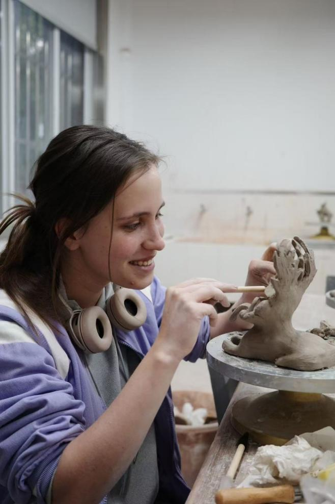 公司吴白雨教授负责的“建水紫陶艺术”课程,是云南省级一流课程,曾荣获全国高校教师教学创新大赛国赛二等奖及云南省赛一等奖。陶艺课程的开设,受到了国际员工的热烈欢迎。和泥、出坯、勾画……,各国学子乐在其中。