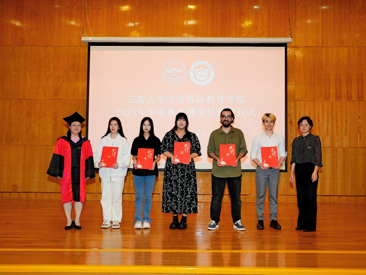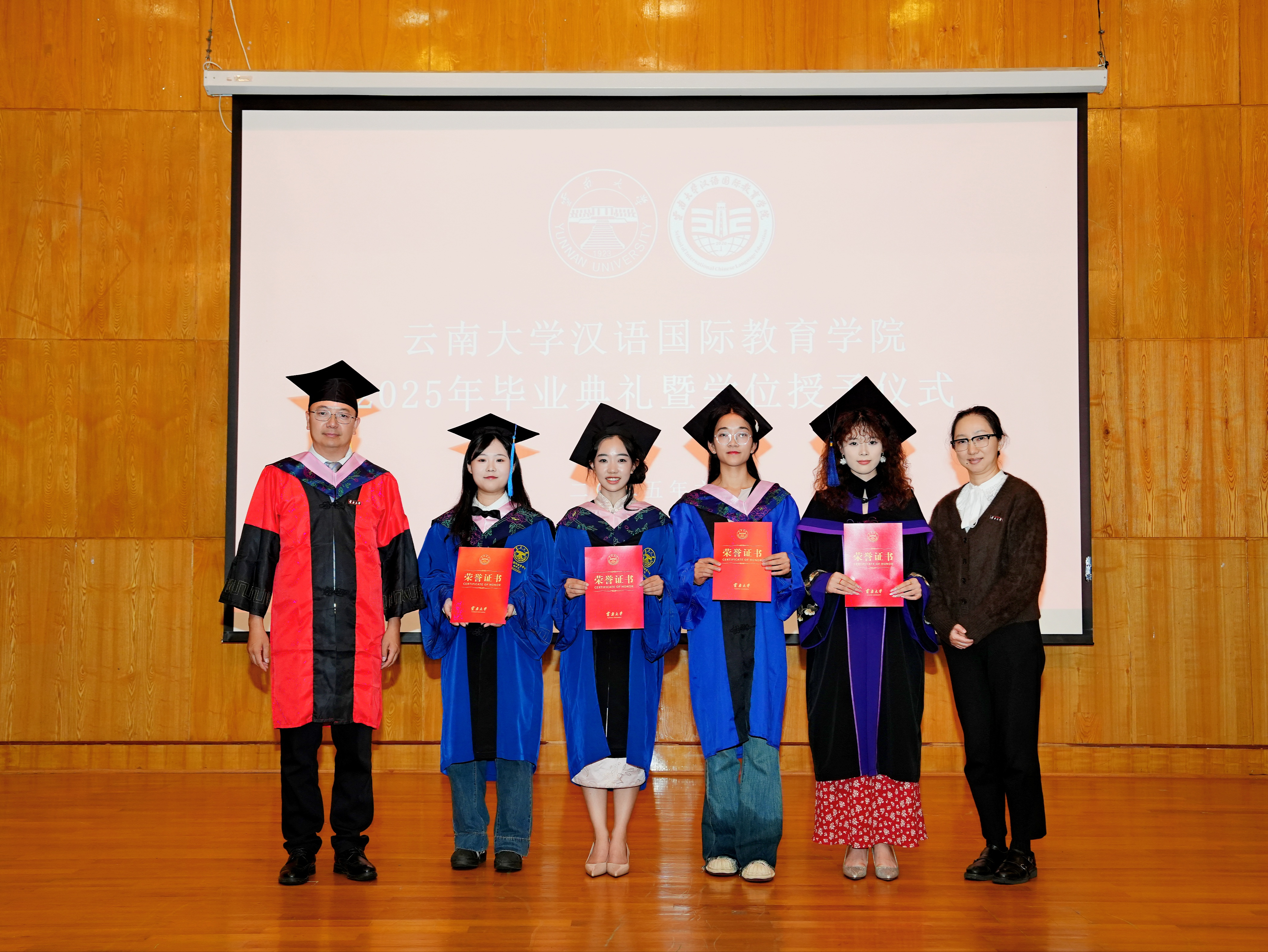 2025届印度尼西亚籍本科毕业生黄丽夏,硕士毕业生张琦,伊朗籍语言班员工马秋泽,泰国籍预科班员工张锦洋,分别作为员工代表进行发言。他们回顾了在云大汉教院的求学时光,感谢老师们的悉心教导,感恩同学们的一路相伴,这段珍贵的学习时光,已深深烙印在心中。毕业后将继续践行“汉语为桥,文明互鉴”的使命,在寰宇广阔的舞台上,绽放文明使者的璀璨光芒。