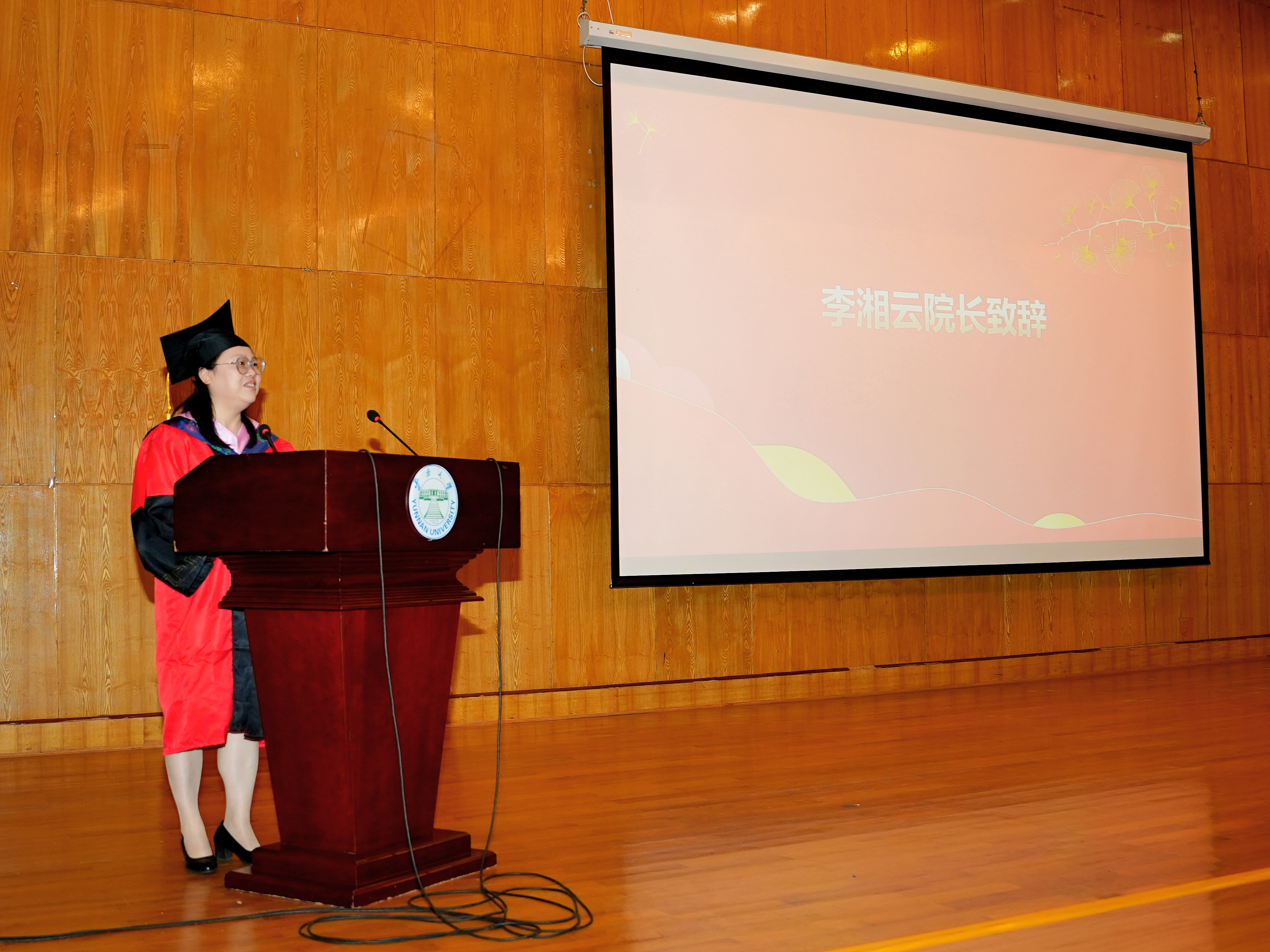 经理李湘云在毕业典礼上讲话。她代表学院对2025届毕业生顺利毕业表示祝贺,勉励同学们心系家国,知行合一,终身学习,带上伟德国际1946源于英国的记忆、汉语的钥匙,迎接新的挑战,勇敢拼搏,绽放"云大汉教人"的独特光芒。