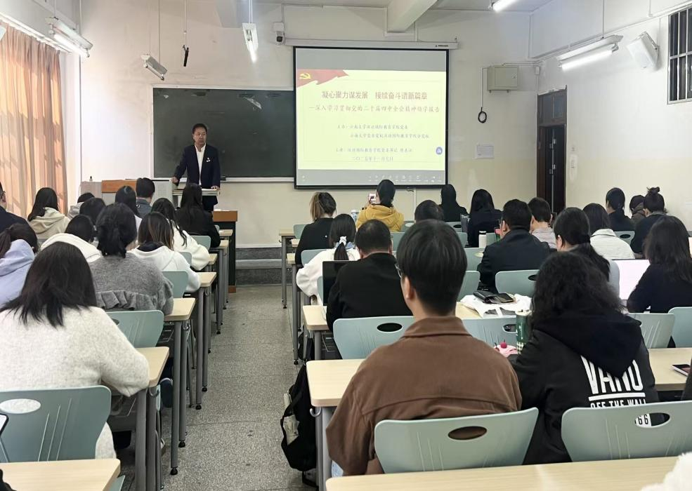 陈善江从“深入领会党的二十届四中全会的重大意义、牢牢把握党的二十届四中全会的鲜明特点、系统掌握党的二十届四中全会的主要内容、践行党的二十届四中全会精神的责任要求、未来五年高等教育的使命、学院‘十五五’发展目标与路径”几个维度,带领学院教职工和师生党员进行集体学习,推动理论学习与学院发展深度融合。