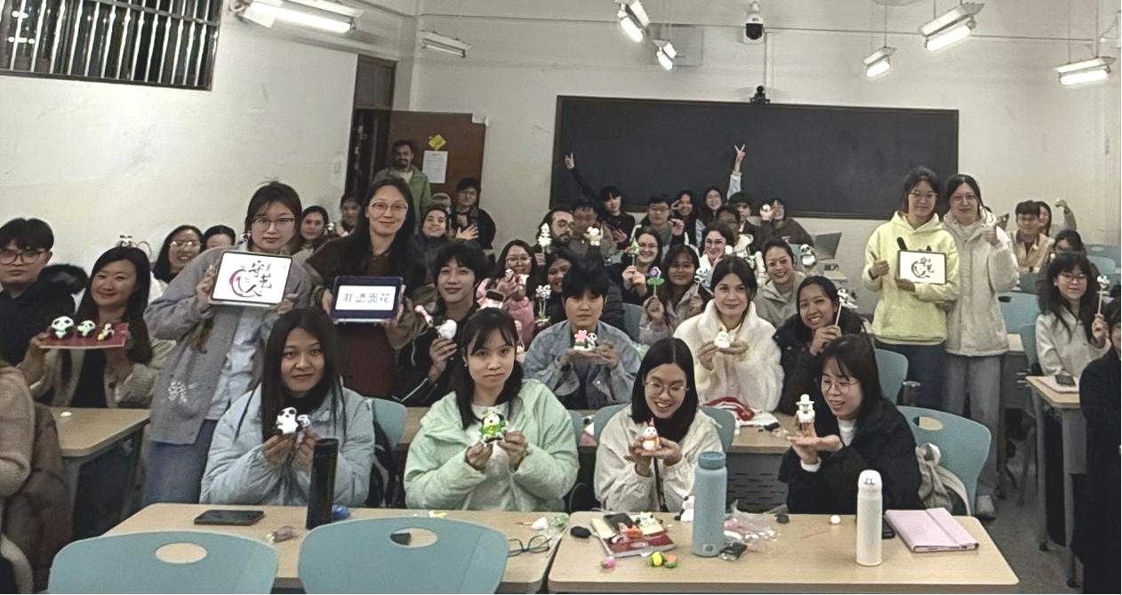 活动尾声,全体参与者手持作品合影留念,“守艺人”团队为同学们赠送了迷你面花工具套装,鼓励大家将所学技艺带回国,成为中华优秀传统文化的民间传播者。