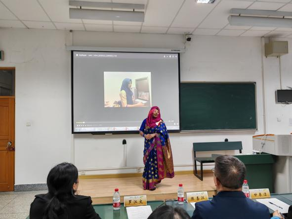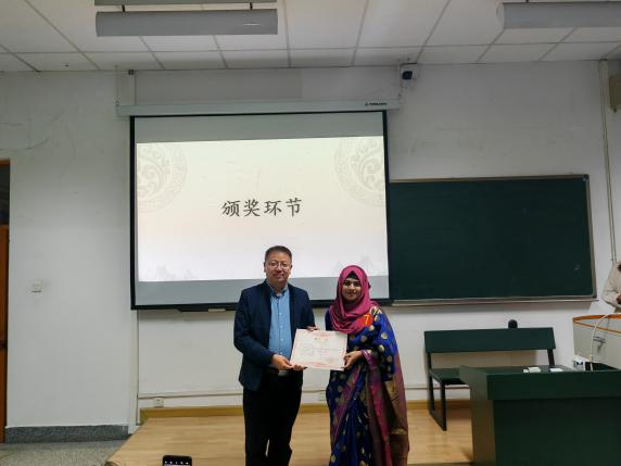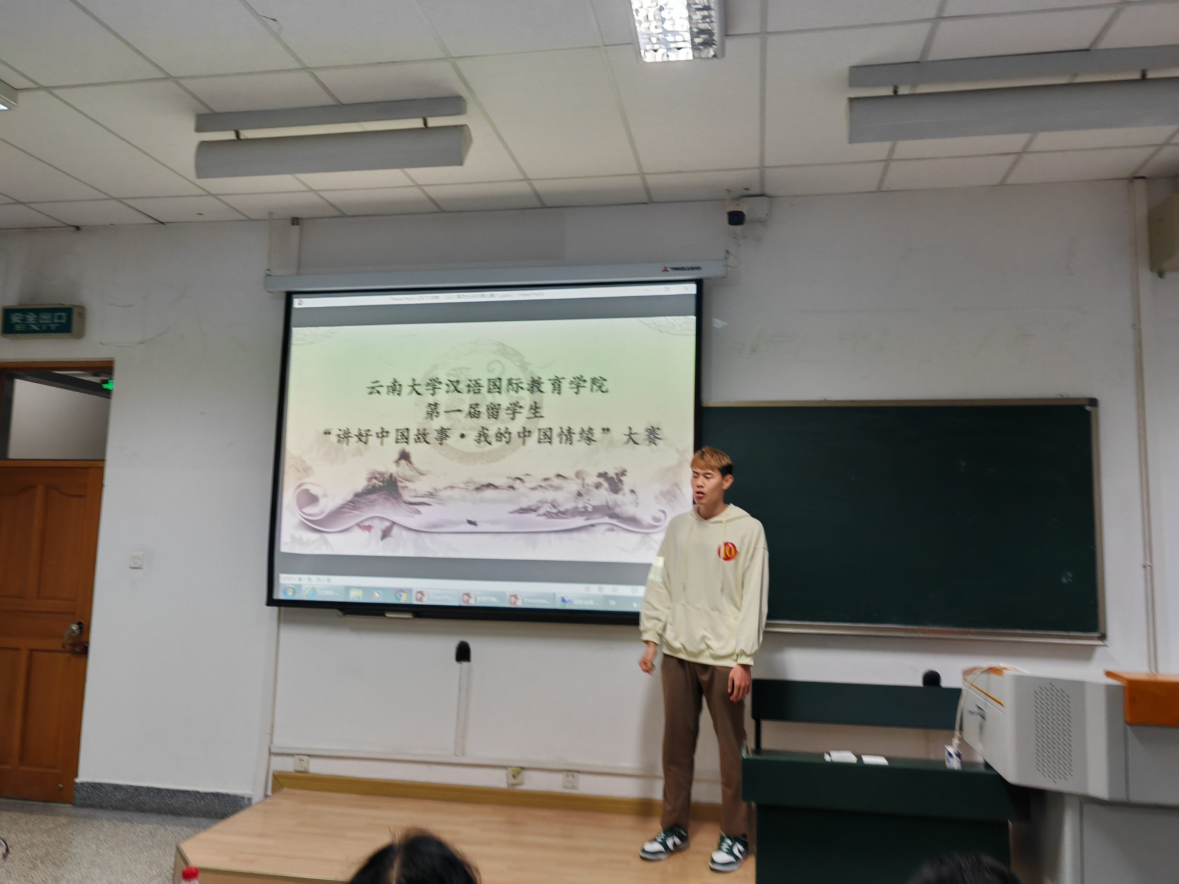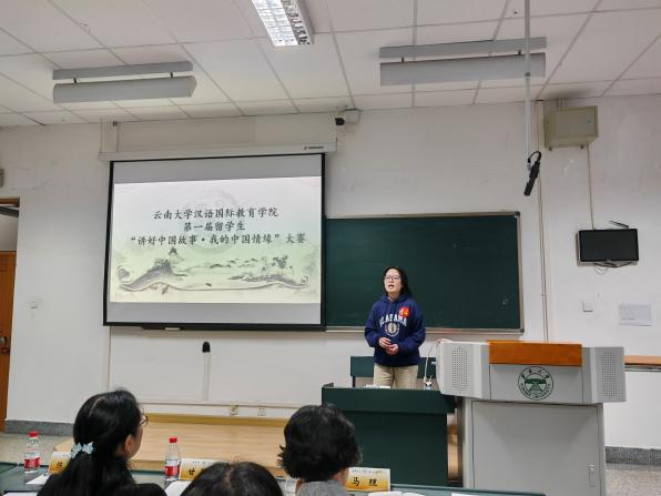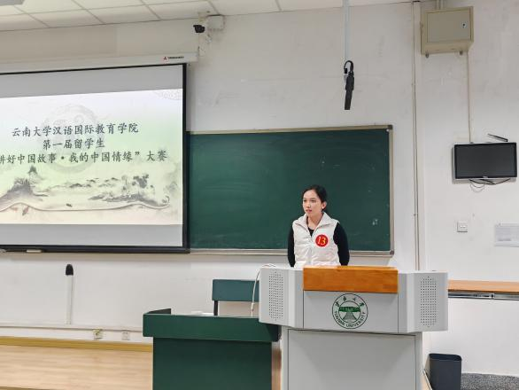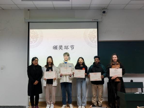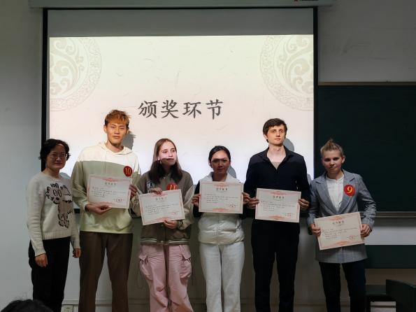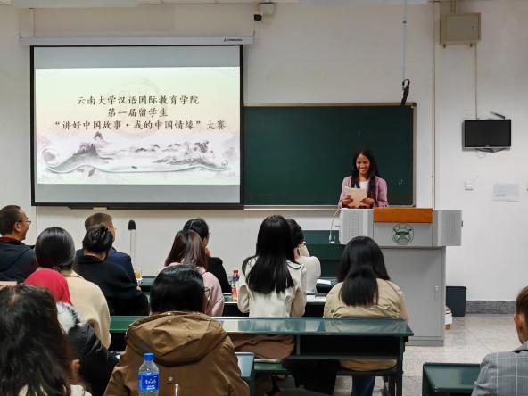 伴随着悠扬的音乐与主持人的赛制介绍,比赛正式拉开帷幕。在自主报名与各年级推荐的基础上,经过初赛选拔,最终14位选手晋级决赛。决赛以演讲的形式进行,赛场气氛紧张热烈、扣人心弦,选手们意气风发,围绕“我与中国的故事”主题,以饱满充沛的情感,用中文来讲述自己与中国的故事。云南昆明的“小锅米线”、老师们和同学们的鼓励与帮助、中华优秀传统文化的魅力是选手们不约而同提到的关键词,他们结合视频与精美的课件,用最美的语言和声音展示着来到中国的感受,感悟中华文化的博大精深,精彩演绎着中文之美、文化之美,赢得了在场人员的阵阵掌声。最终,经过激烈的角逐,李伊甜获一等奖、达丽娅等4位同学获二等奖、谢国民等4位同学获三等奖、毛丽金等5位同学获优秀奖。