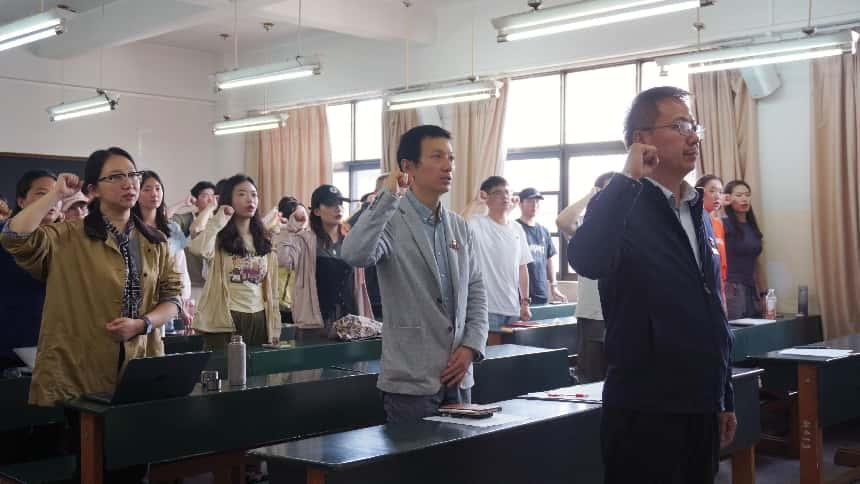 会议最后,陈善江书记带领全体党员重温入党誓词,铿锵誓言回荡会场,彰显了学院师生党员坚守初心、勇担使命的坚定信念。与会党员纷纷表示,将以受表彰同志为榜样,立足岗位、奋发有为,以更加昂扬的斗志、更加务实的作风,推动学院各项事业再上新台阶。
